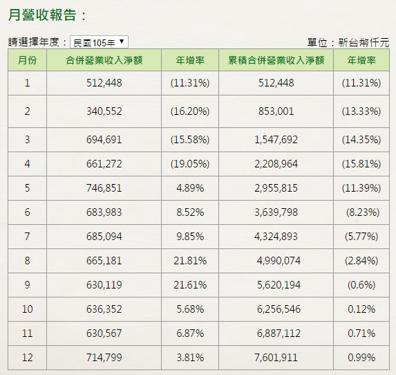 請記住要用前年的同月份來比較,因為在臺灣有所謂的年節和中元普渡等大小月差異,前後兩年互相對照才有依據。