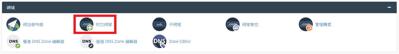 步驟一 : 登入Cpanel後台,附加新網域