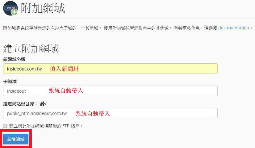 填入新網域,其餘系統會自動帶入