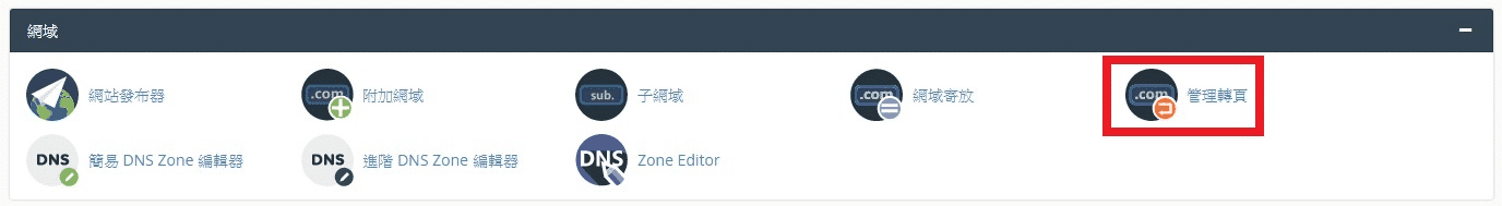 步驟二 : Cpanel後台,管理轉頁