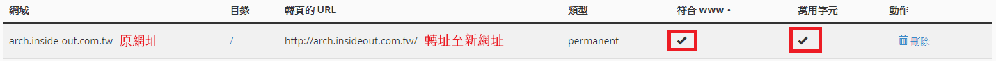 查看轉頁是否設定成功,符合www & 萬用字元 都要勾選。