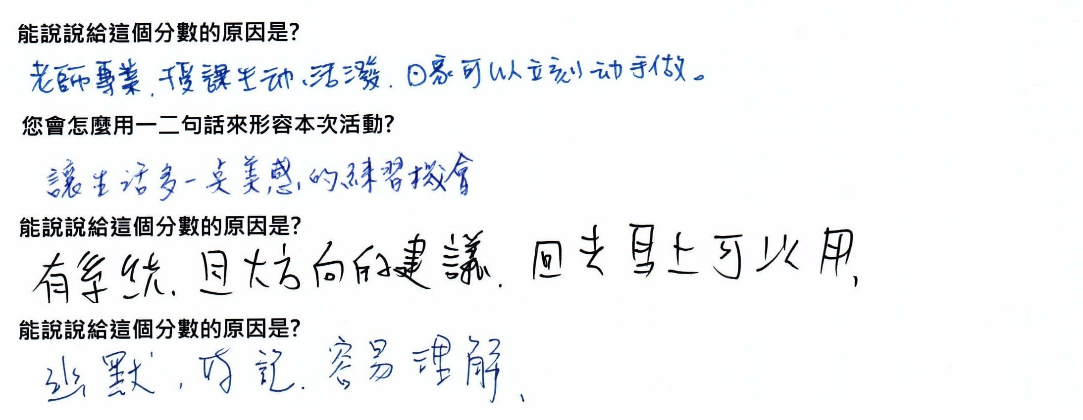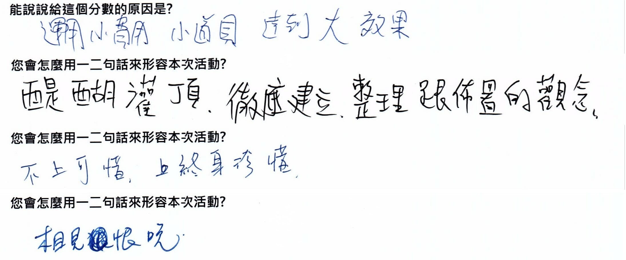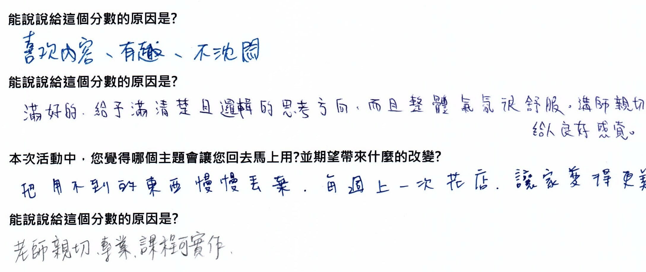 還有好多心中小點滴,都讓我感動不已。看到同學們的成果,我也蠢蠢欲動的想丟陳年無用物品,就像是正向吸引力場,把一群想要美好生活的人們聚集在一起。
